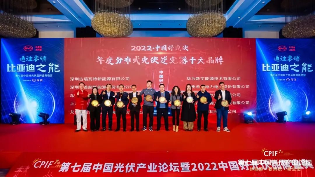 2月21日-22日,第七屆中國(guó)光伏產(chǎn)業(yè)論壇暨2022中國(guó)好光伏品牌盛典在北京召開(kāi)。該大會(huì)匯聚行業(yè)數(shù)百家核心企業(yè),共同探討光伏產(chǎn)業(yè)的新動(dòng)態(tài)和新前景。古瑞瓦特受邀出席并榮獲“年度分布式光伏逆變器十大品牌”大獎(jiǎng)第一名和“年度光伏逆變器十大品牌”大獎(jiǎng)第二名。此次獲獎(jiǎng),是行業(yè)、市場(chǎng)及廣大客戶對(duì)古瑞瓦特一直以來(lái)深耕創(chuàng)新研發(fā),用產(chǎn)品品牌價(jià)值助力能源變革、促進(jìn)能源可持續(xù)發(fā)展的肯定。
